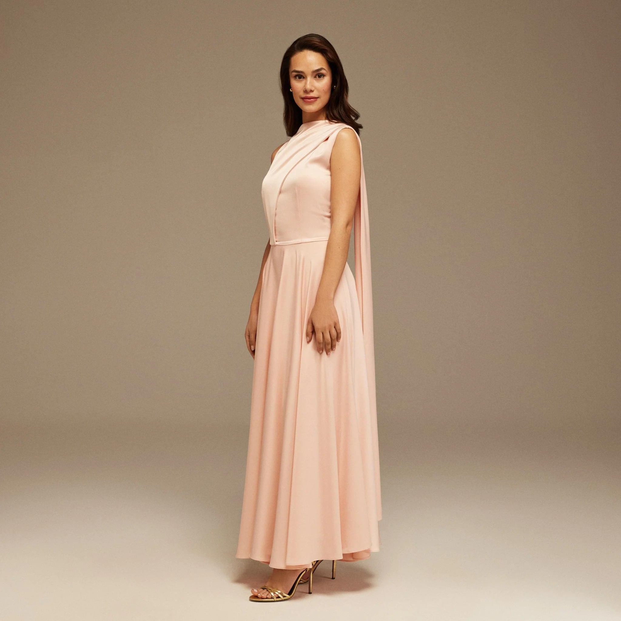 Pink Sleeveless Satin Maxi Dress With Scarf